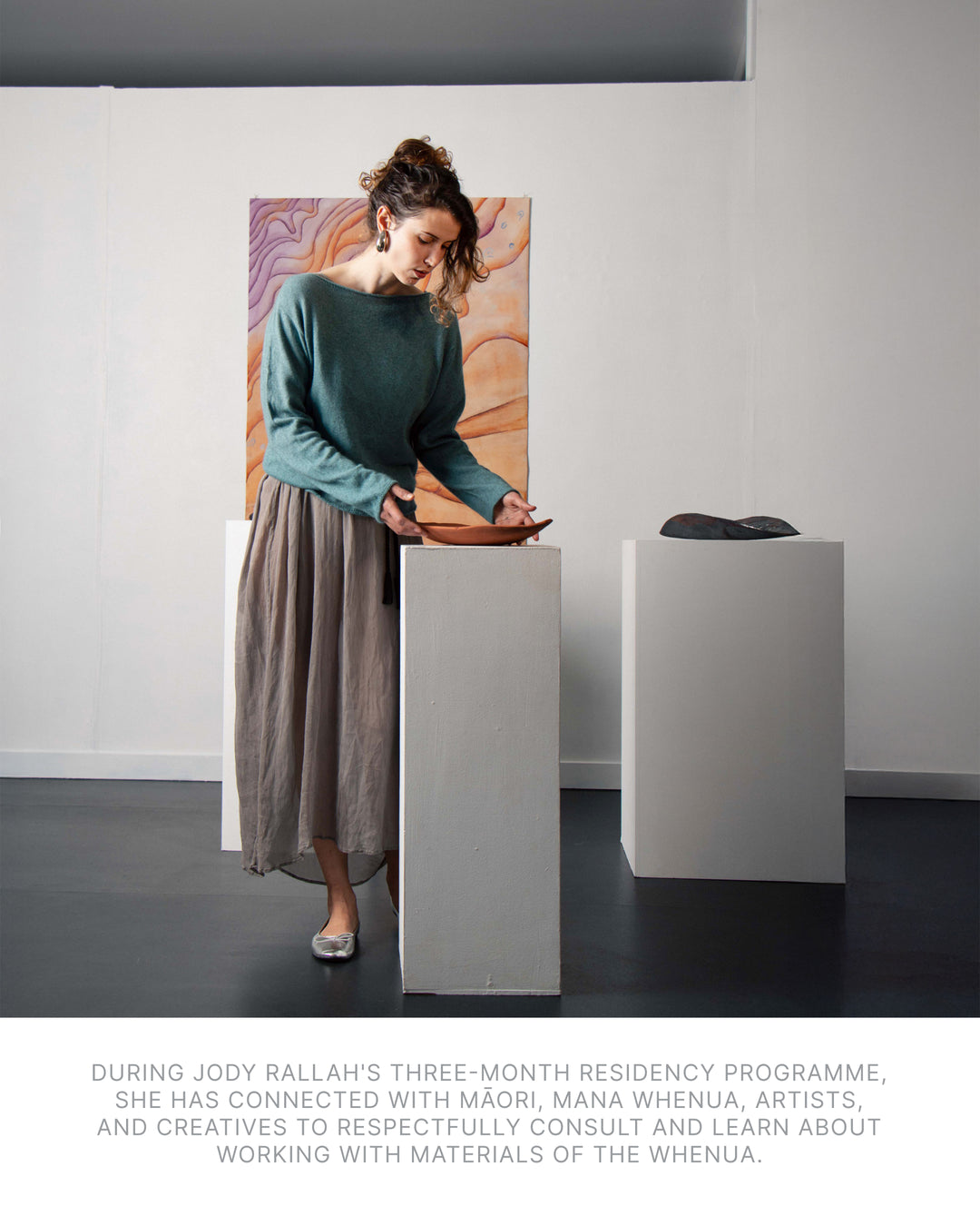 During her three month residency programme on Waiheke Art Gallery, Jody has connected with Māori, mana whenua, artists, and creatives. These conversations are grounded in respect as she learns to work with the materials of the whenua.